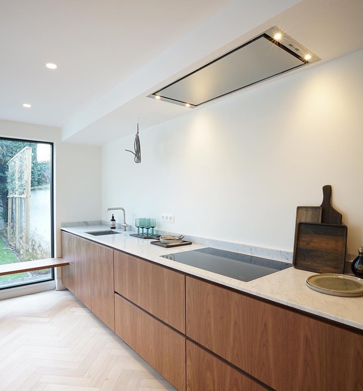 Strakke wanden en (verlaagde) plafonds, klaar voor schilderwerk. Spots en technieken netjes ingewerkt.